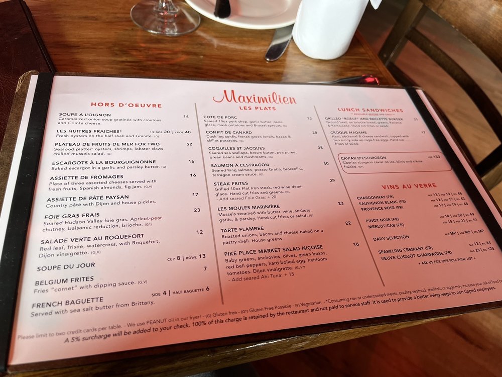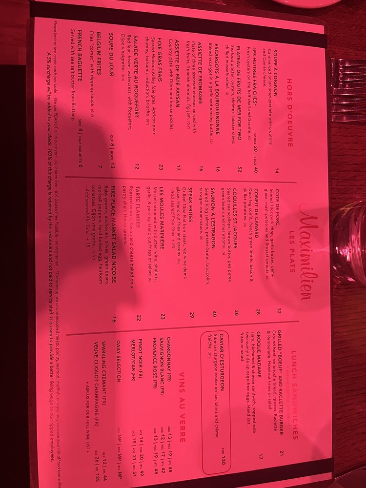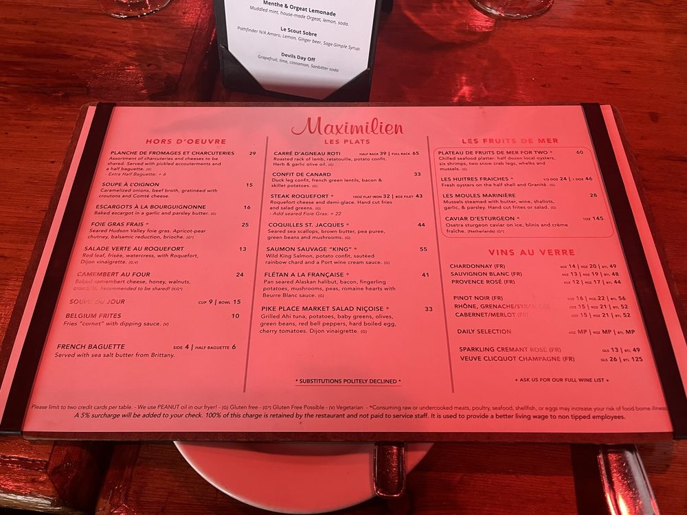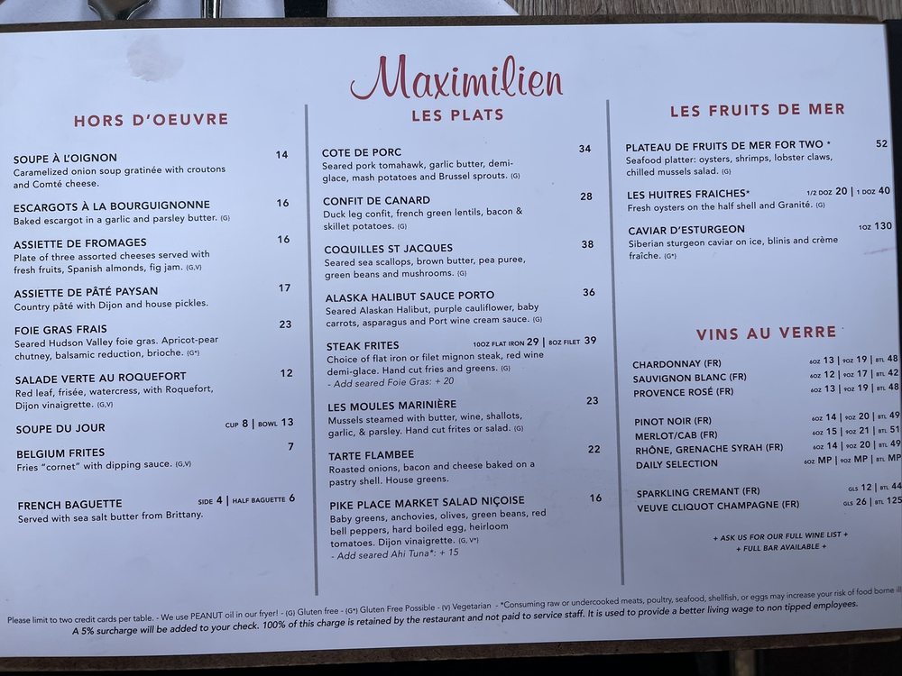 While vegetarian options are limited, the overall culinary journey is elevated by attentive service and a welcoming atmosphere. Whether indulging in a prix fixe menu during Seattle Restaurant Week or savoring a hand-crafted cocktail during happy hour, Maximilien promises a memorable dining experience that captivates the taste buds and delights the senses.